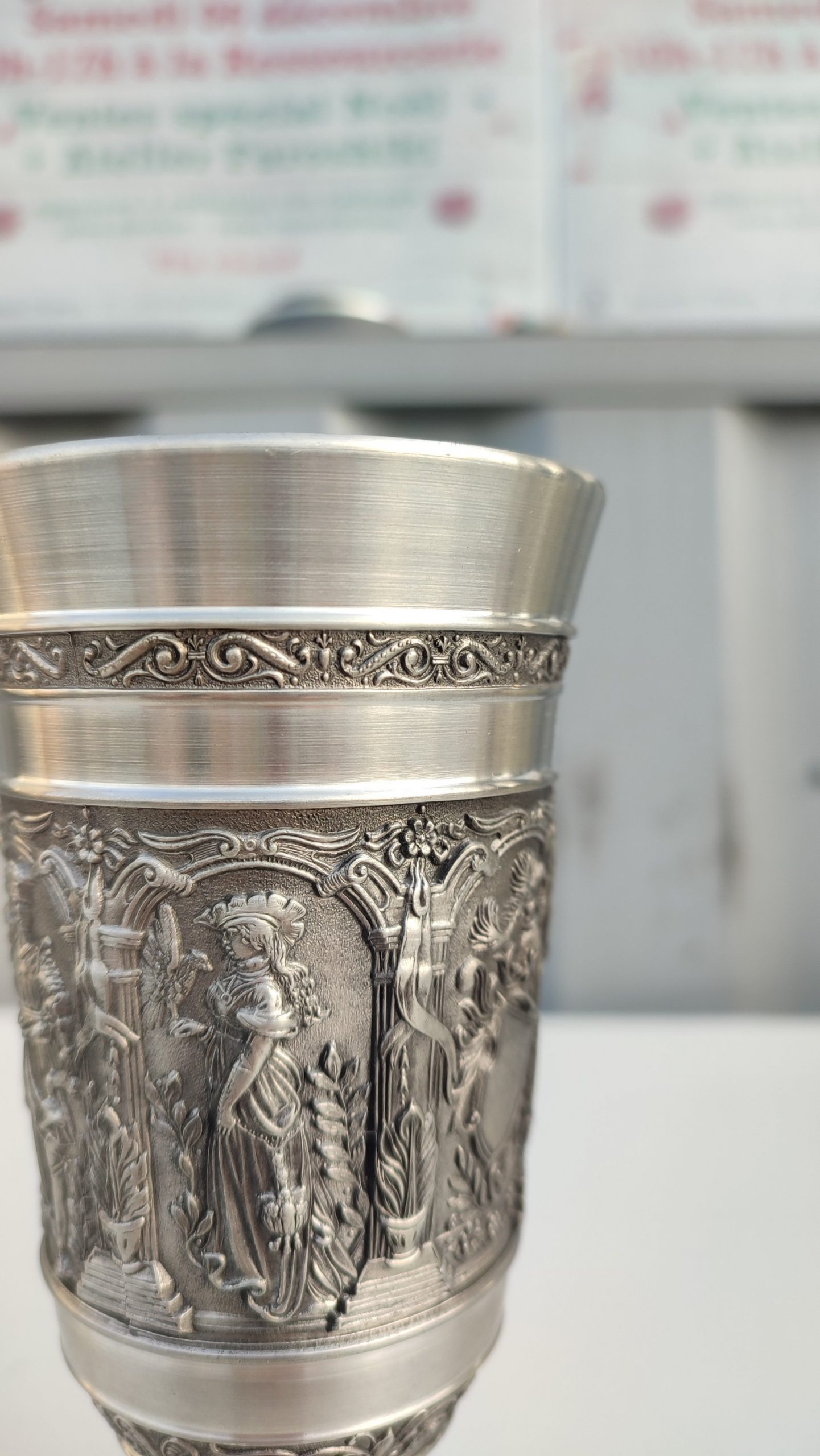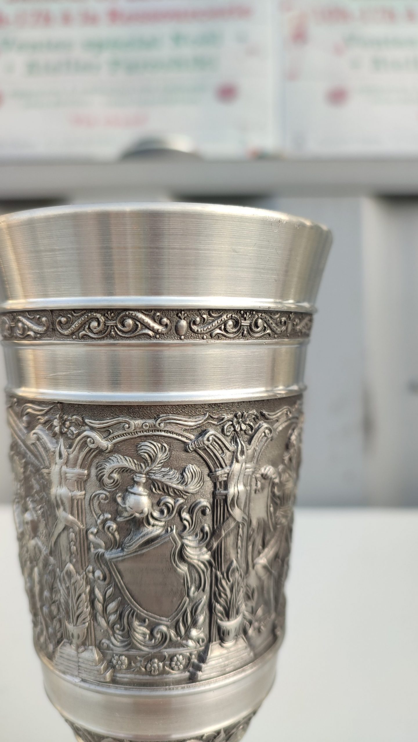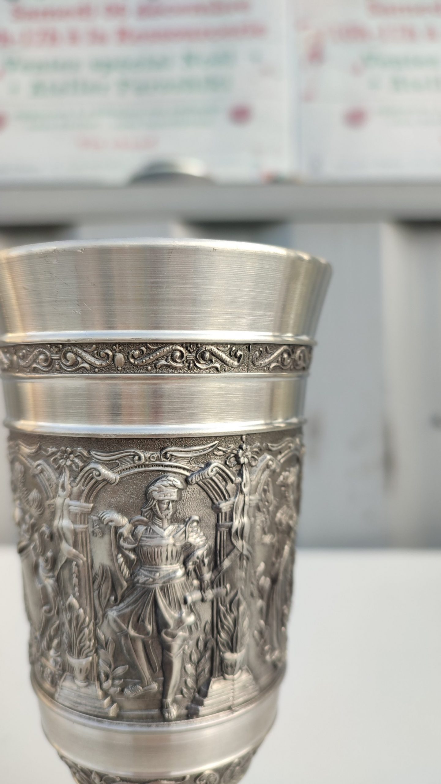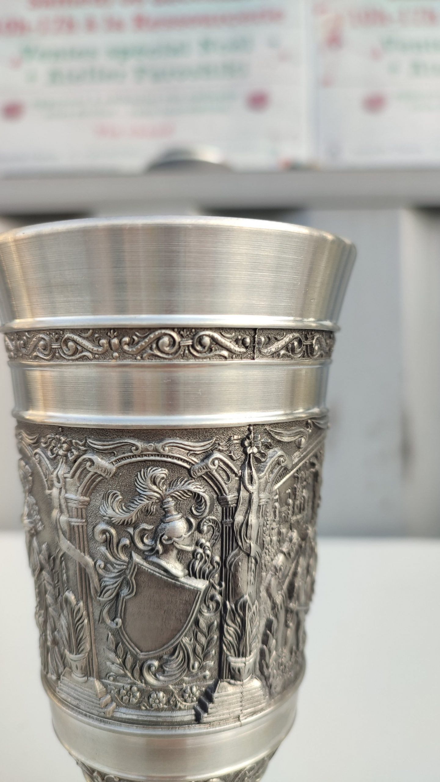 Calice en étain sculpté
