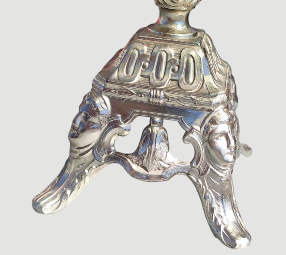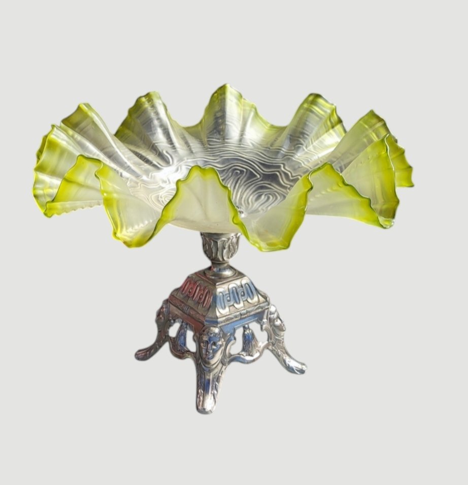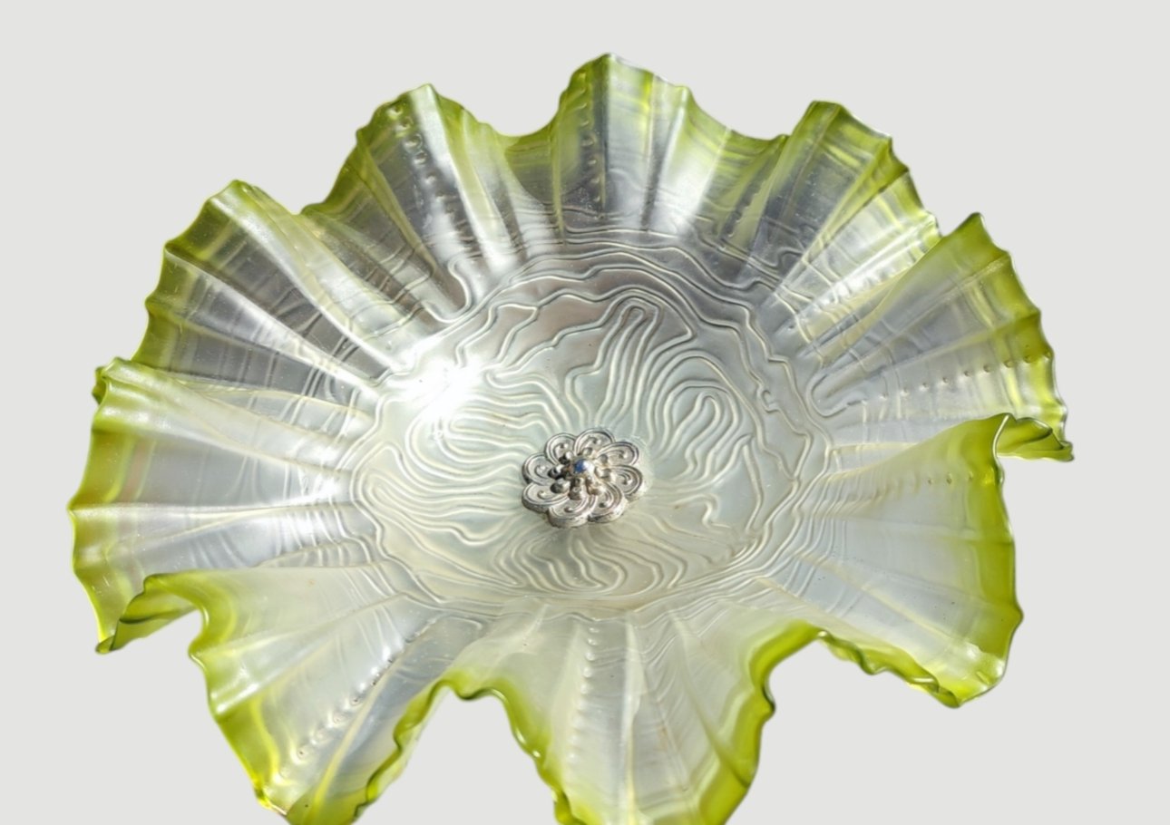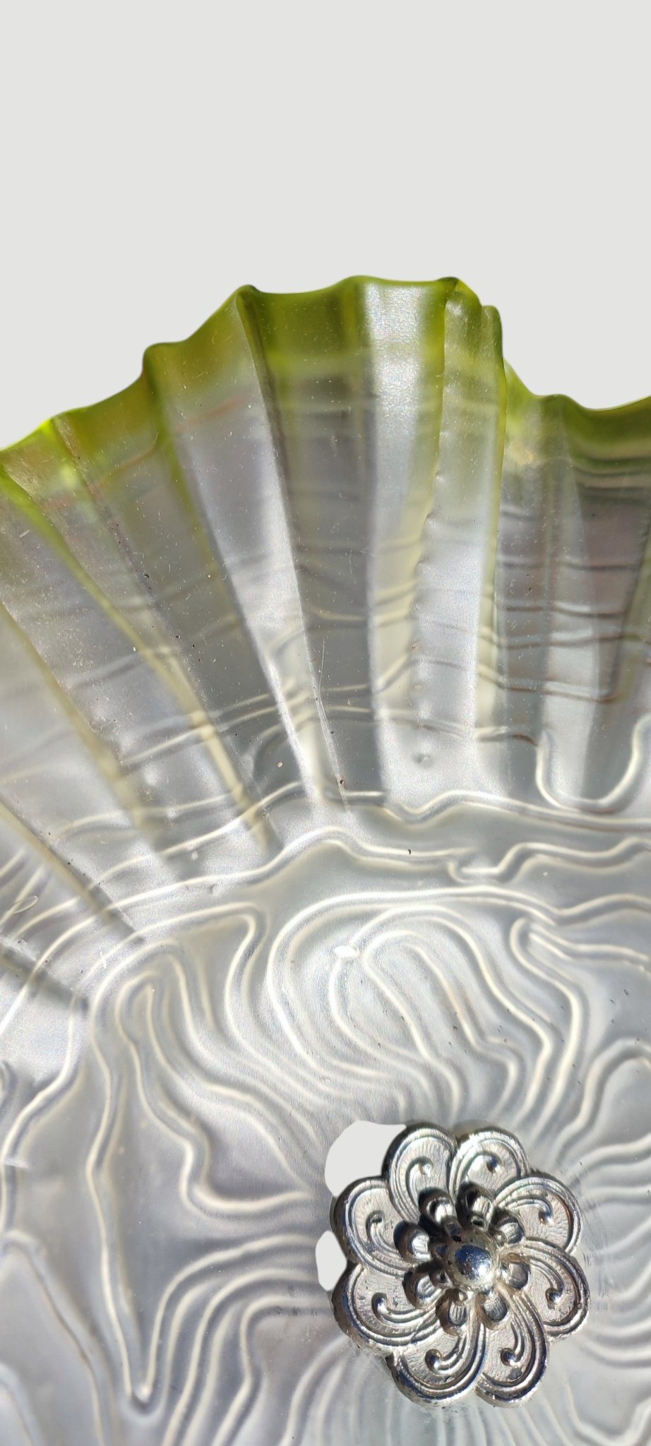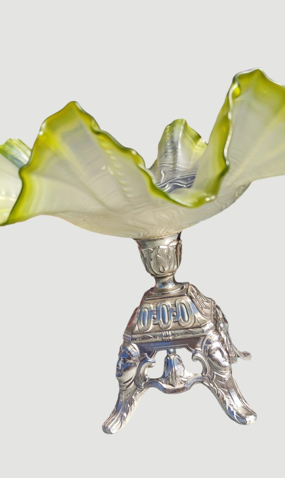 verre opaline soufflé gaufré. sur pied en métal argenté.