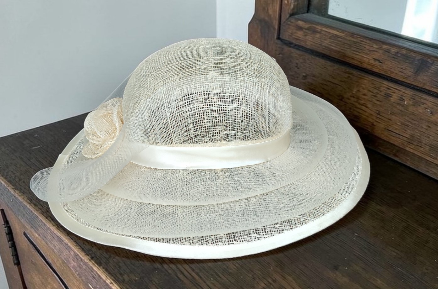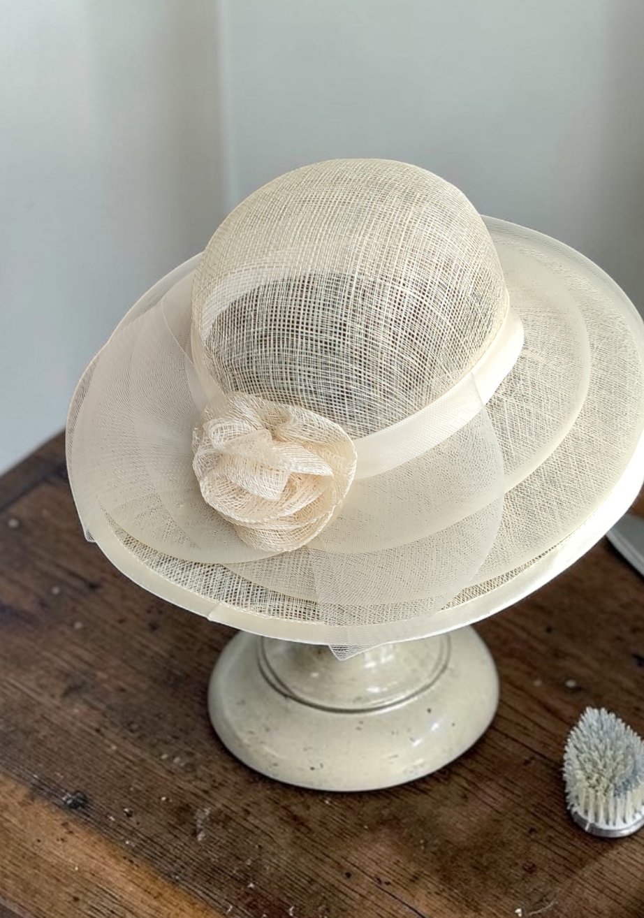 Chapeau femme en sisal crème.