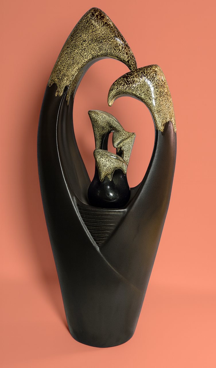 Fontaine décorative en porcelaine noire . Fonctionne sur le secteur