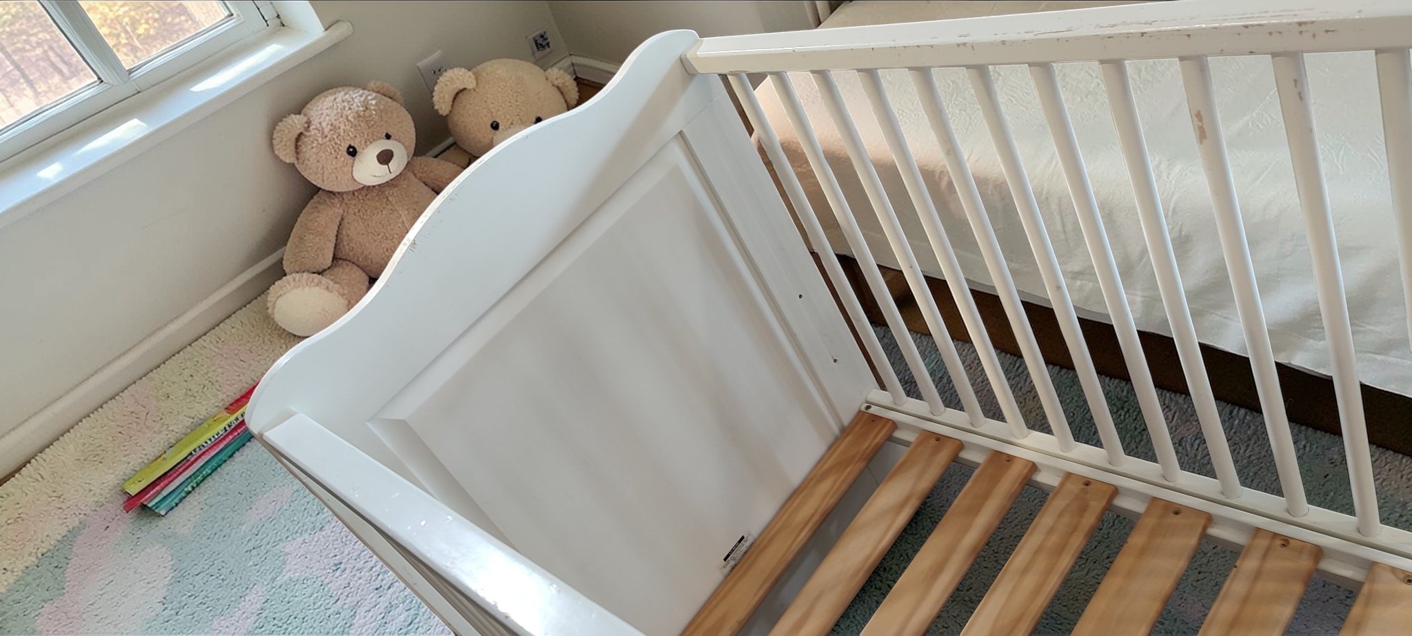 lit en bois blanc , quelques égratignures sur la peinture. ( voir photo)