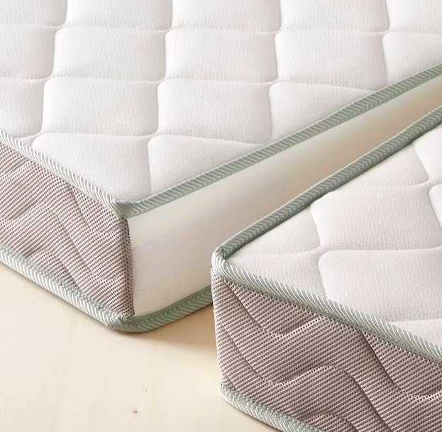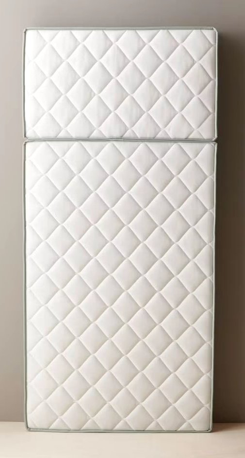 lit évolutif enfant en bois peint en blanc + sommier à lattes + 2 matelas.qui s’attachent par un scratch.