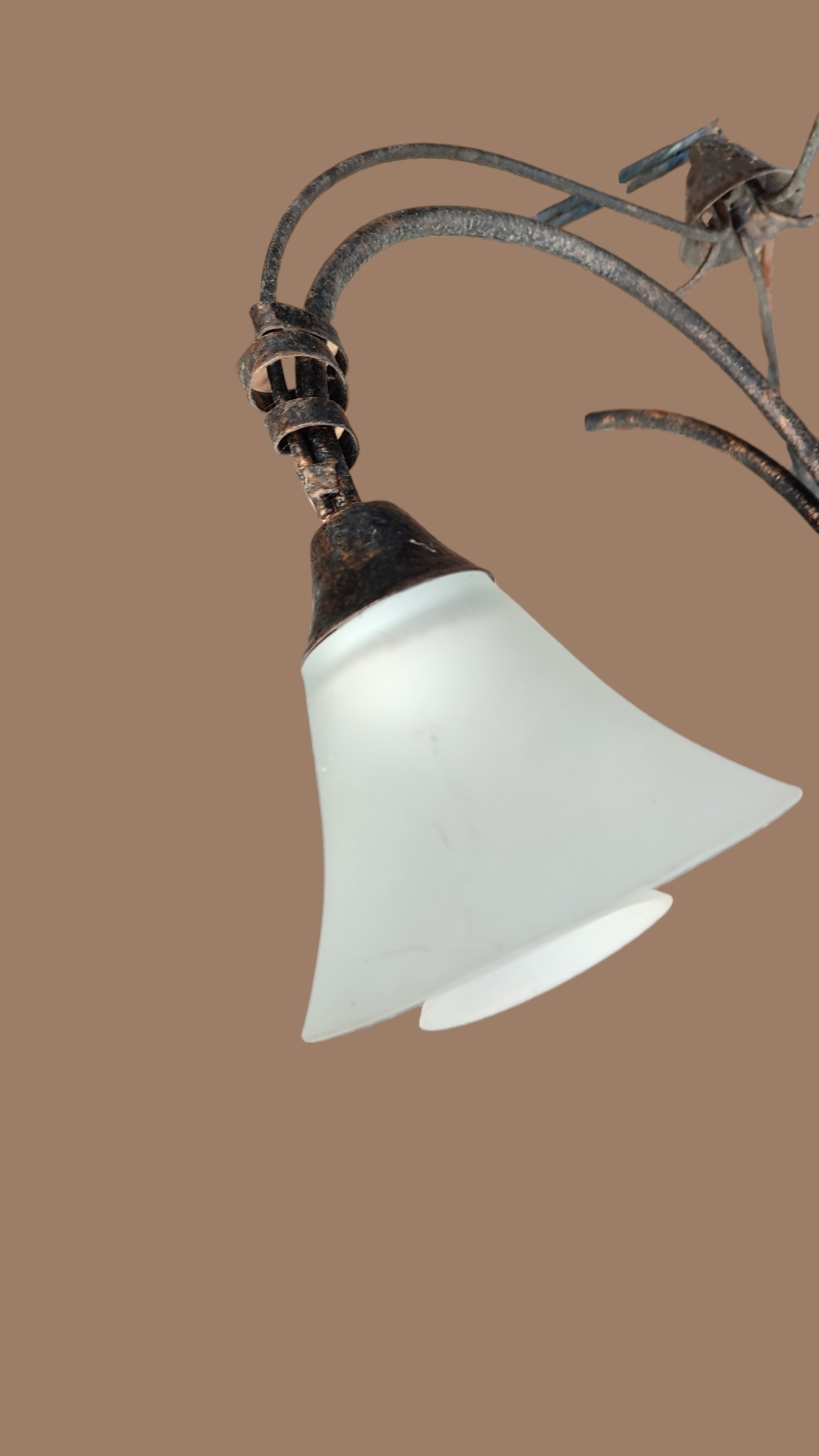 Lustre plafonnier 5 branches métal vieilli et verre