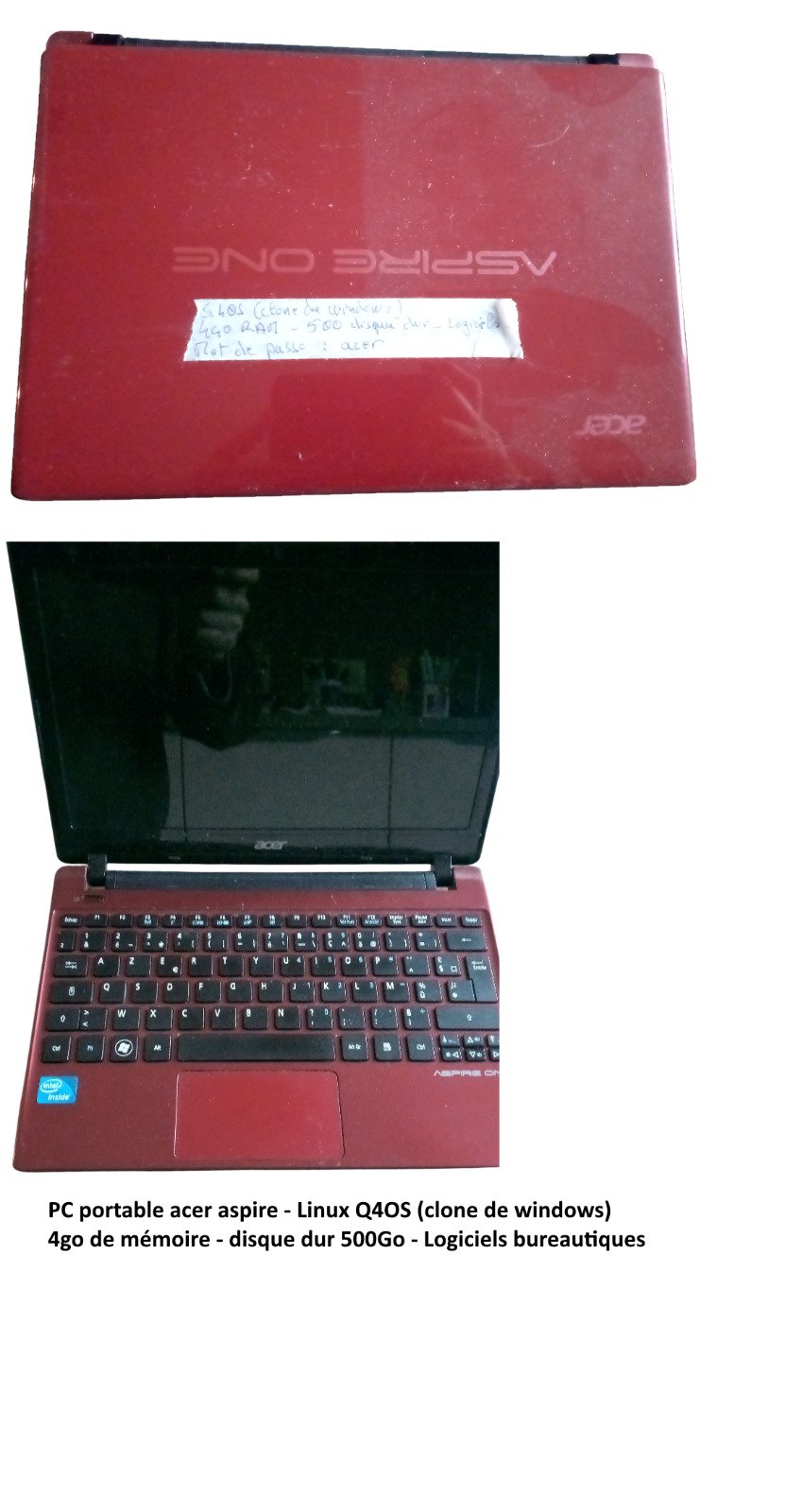 pc portable acer. voir caractéristiques sur la photo