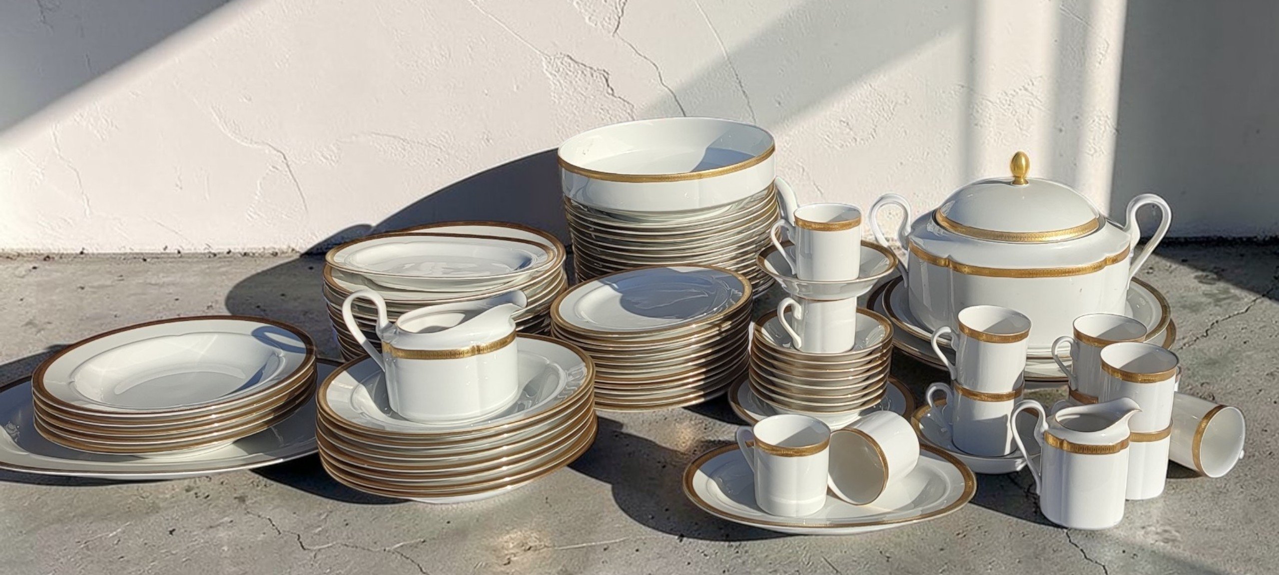 Service de table en porcelaine fine de Bavière avec filet or « SCHERZER »