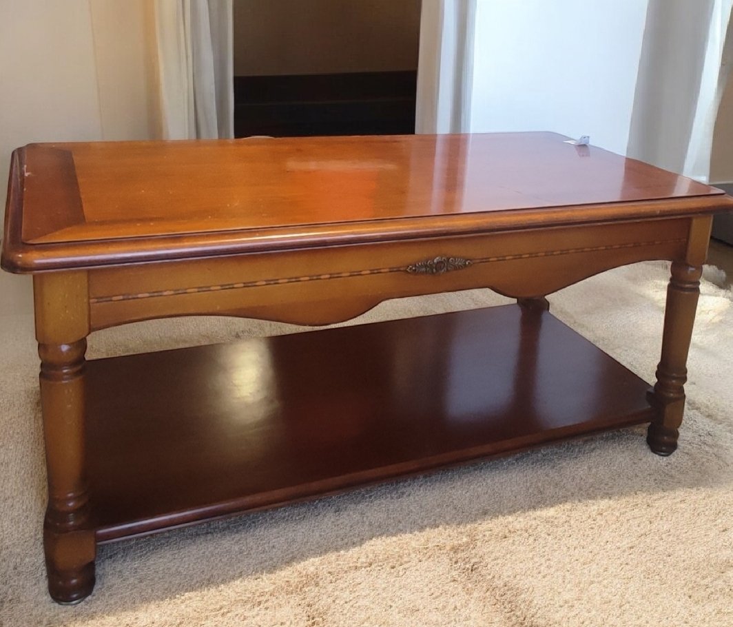 Table basse double plateau . Bois massif.