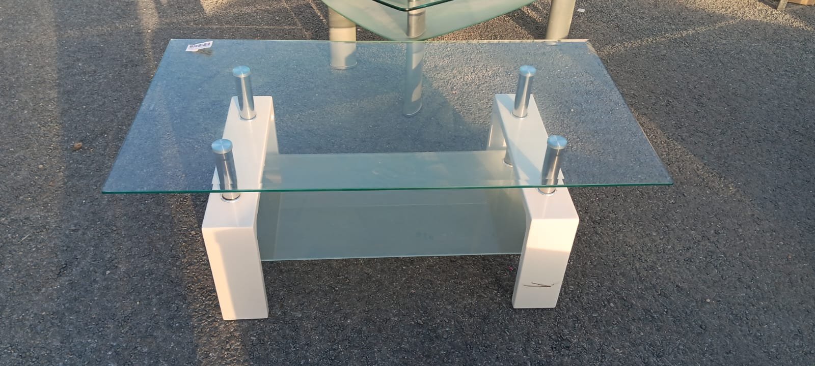 table basse design. double plateaux verre. Pieds en métal