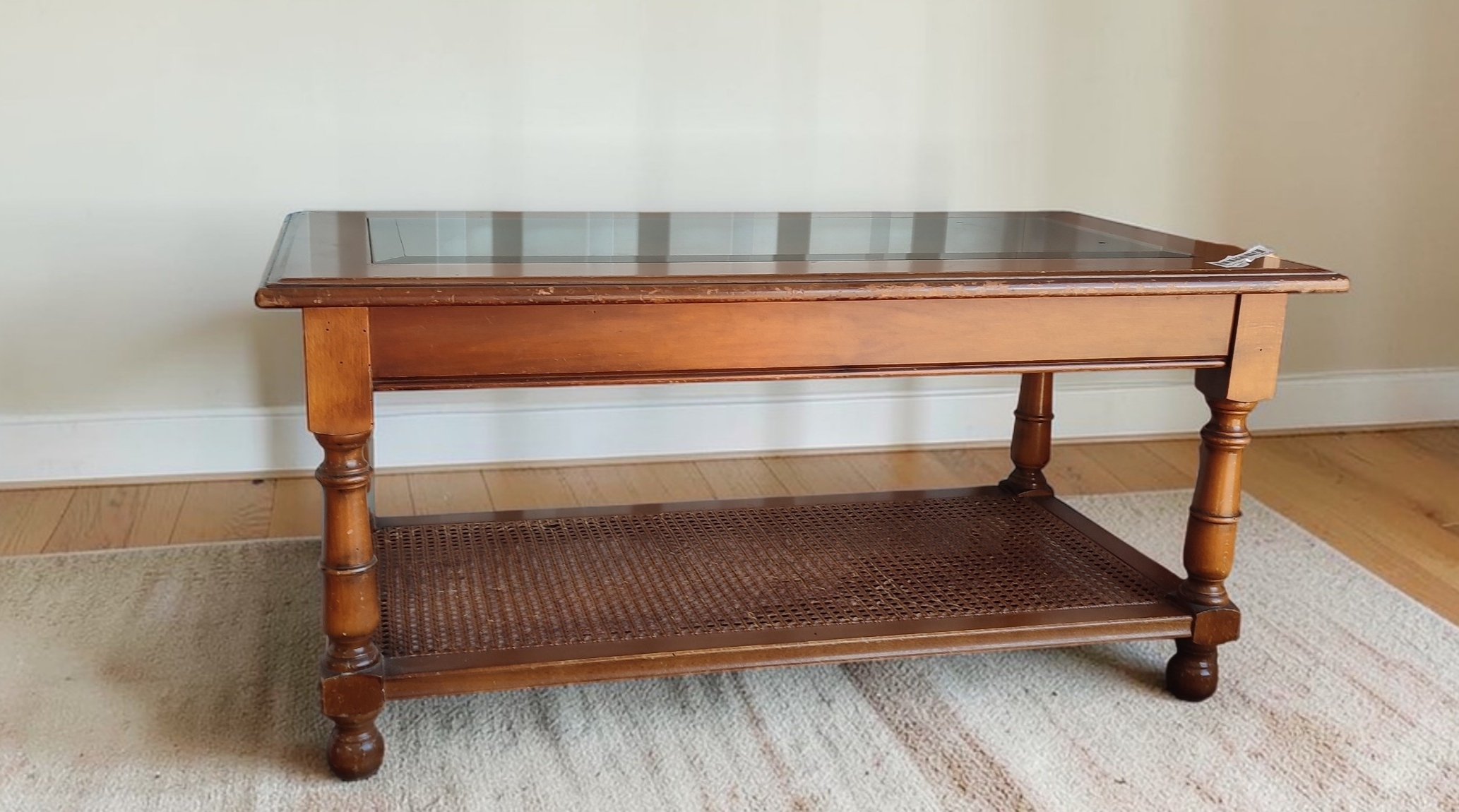 table basse en fer forgé blanc . plateau en verre dimensions 55 x 110 cm